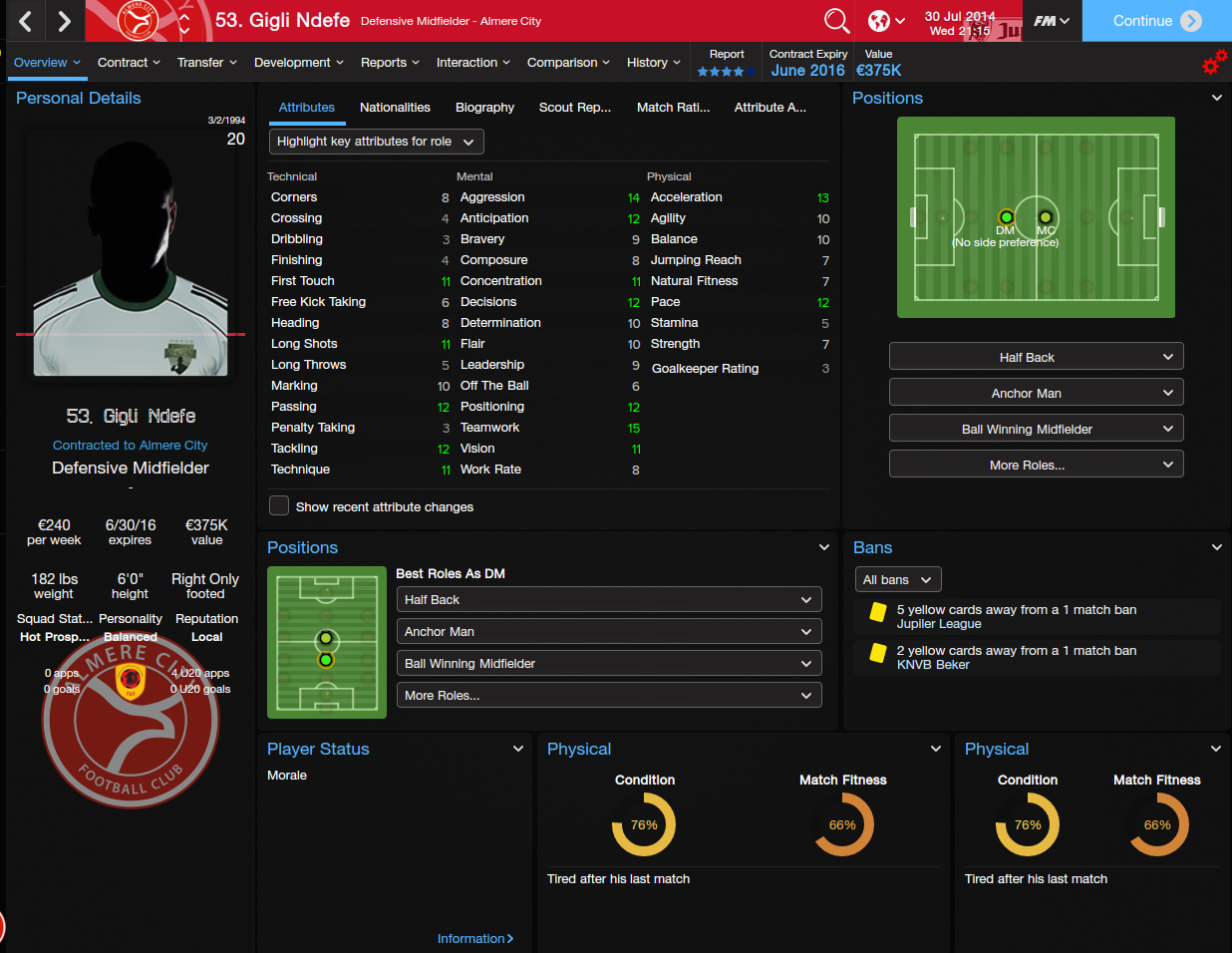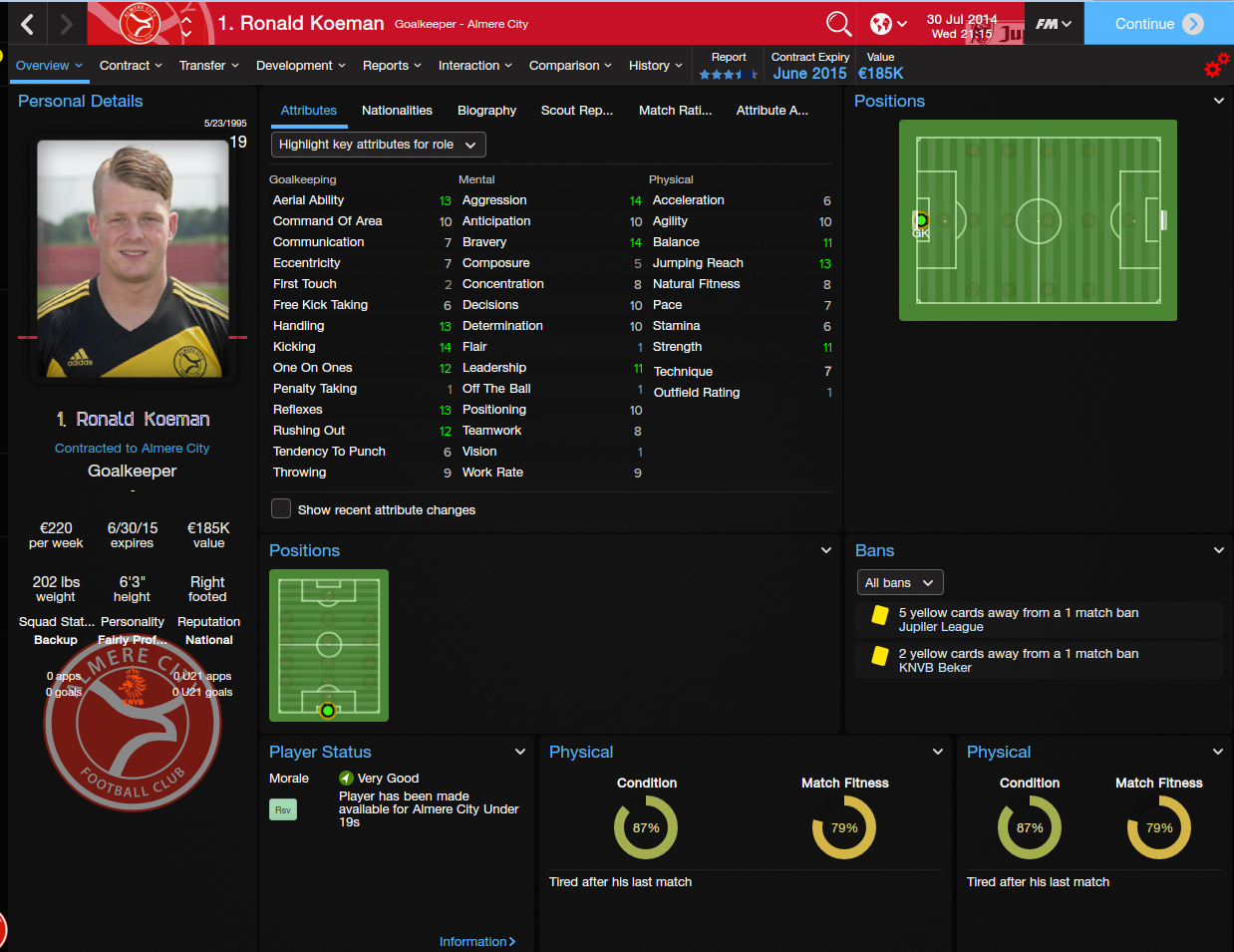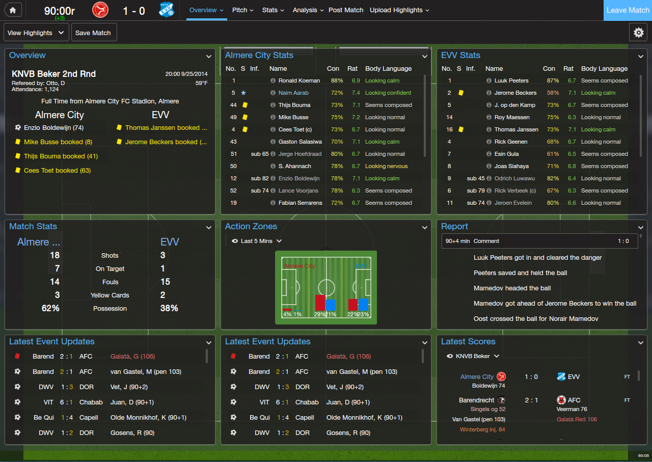 I decided on Almere City, even though Telstar would've fit in more with the tactic I wanted to use. I liked Almere City's colors and logo better, and Almere City has an interesting story. Almere is the newest city in the Netherlands, and Almere City, the club, is a baby in terms of European football, aged only 13 years in 2014 when the save starts. It was borne out of Almere wanting to be prominent in sports, and the club used to be called Omniworld, although it thankfully got changed to Almere City a few years back.