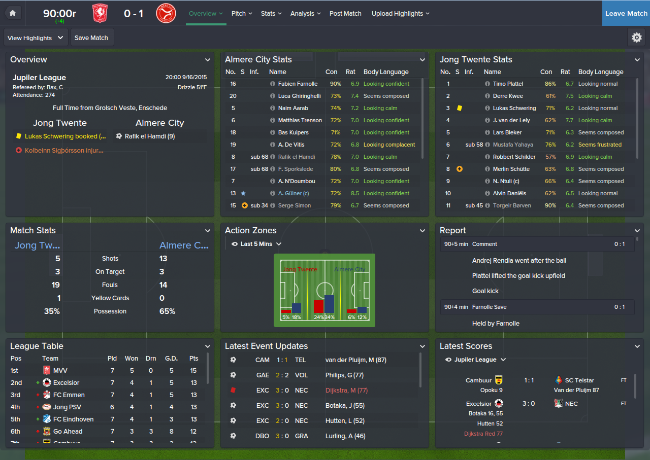 I would really hope we would win this one, as Jong Twente hasn't won any points in the league yet. However, it was more like a Georges St. Pierre fight than a Ronda Rousey fight, we get the early advantage and lay on top of the opponent with our possession, instead of knocking them out with a multi-goal display.
