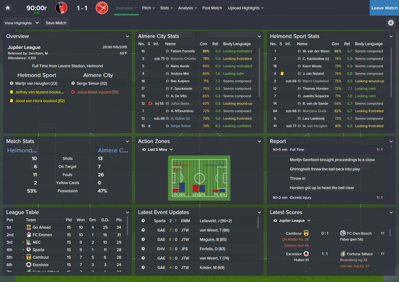 I changed some things around and the team responded very well, Gulner had 2 goals and an assist, and Serge Simon was a super-sub at AML, providing 2 assists.