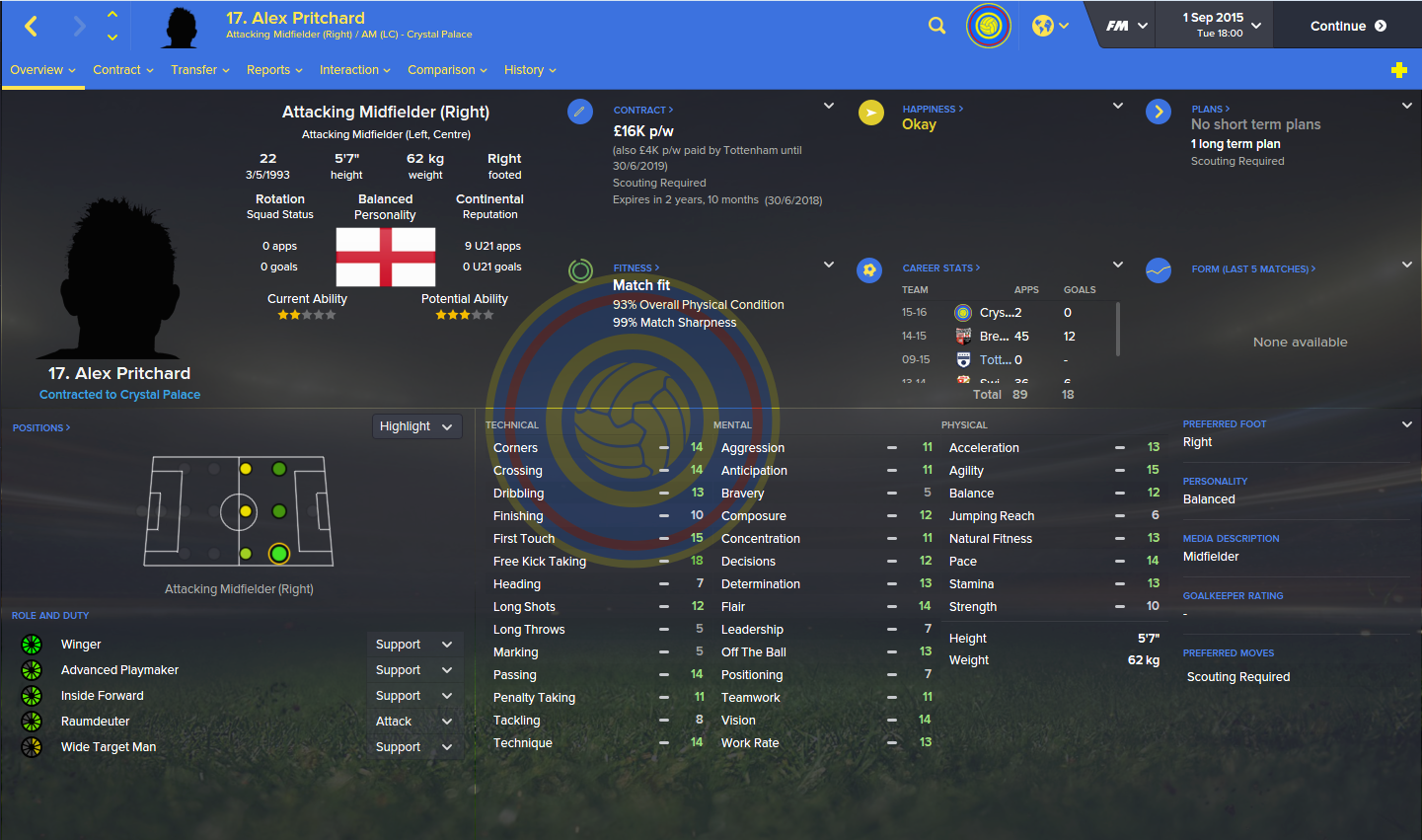 Despite being billed as one of Spurs top prospects, Alex Pritchard was allowed to go to Selhurst Park for £4,300,000 as Alan Pardew looks to add more creativity to his Eagles side.