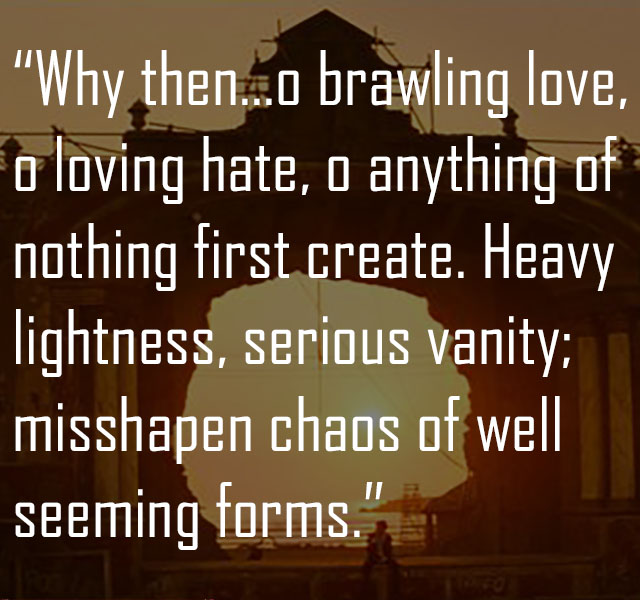 "Away from light steals home my heavy son," said Lady Montague, "and private in his chamber pens himself, shuts up his windows, locks fair daylight out, and makes himself an artificial night."