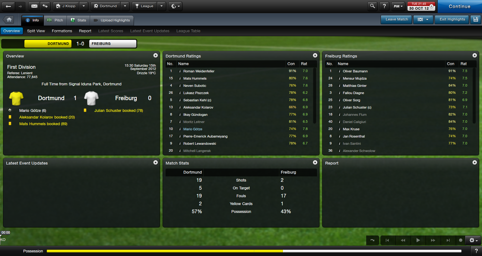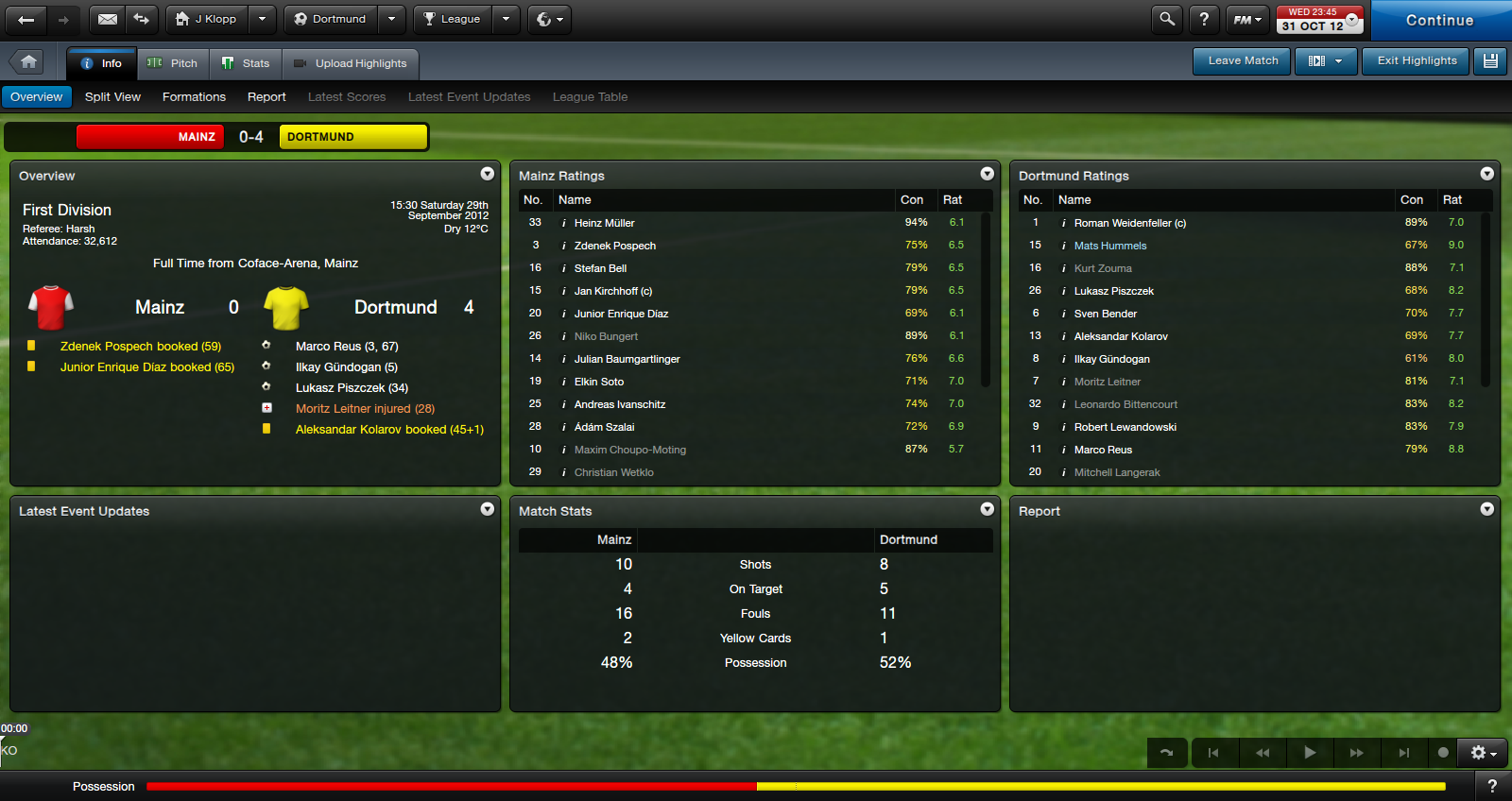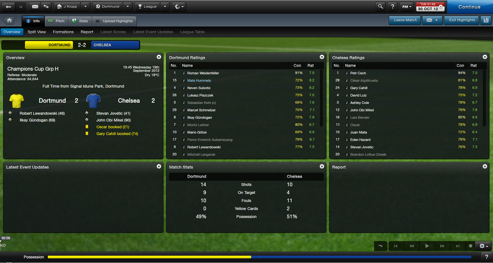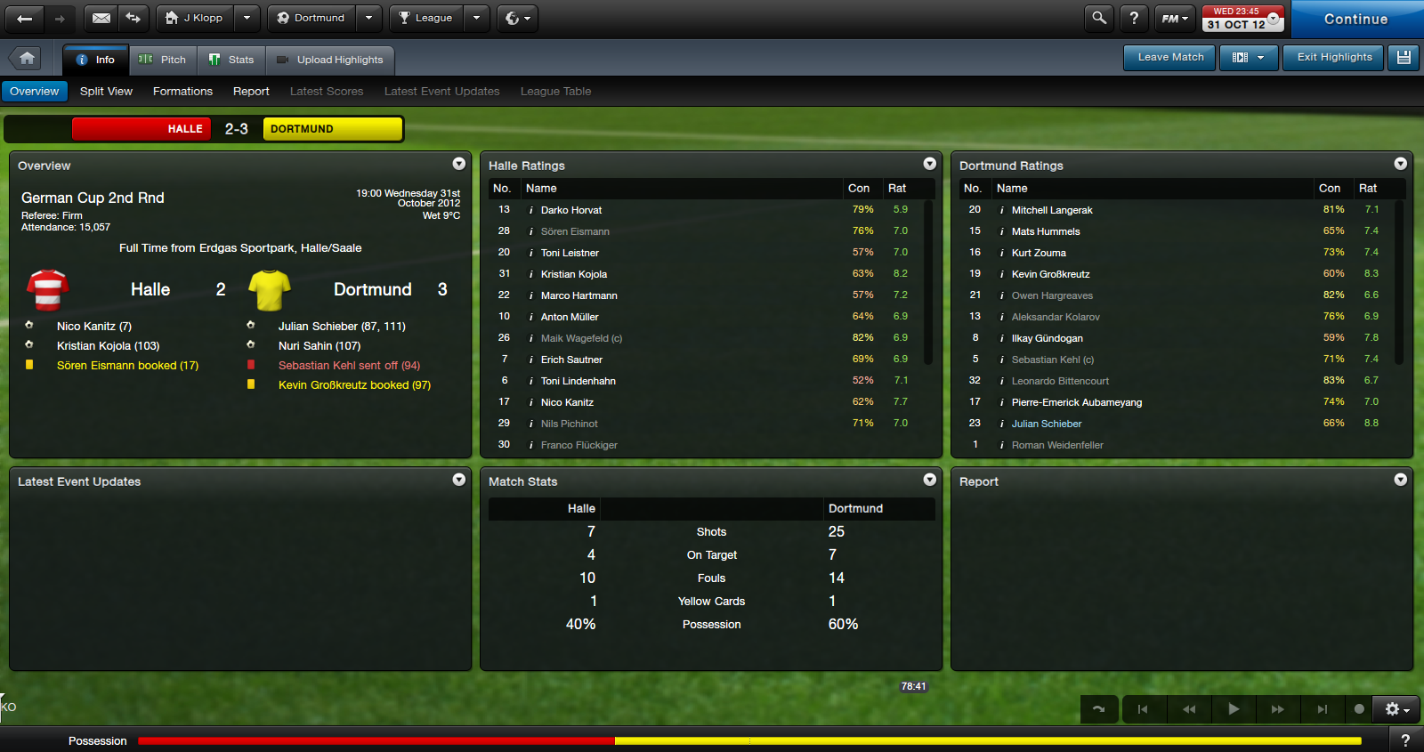 I would use the second team I support. Borussia Dortmund, at the time BVB had 'that trio' of Mario Gotze, Marco Reus and Robert Lewandowski. That season the Schwarzgelben also finished a way off the Bundesliga champs Bayern, 15 points to be exact, and of course reached the Champions League Final and were in the same group as City.