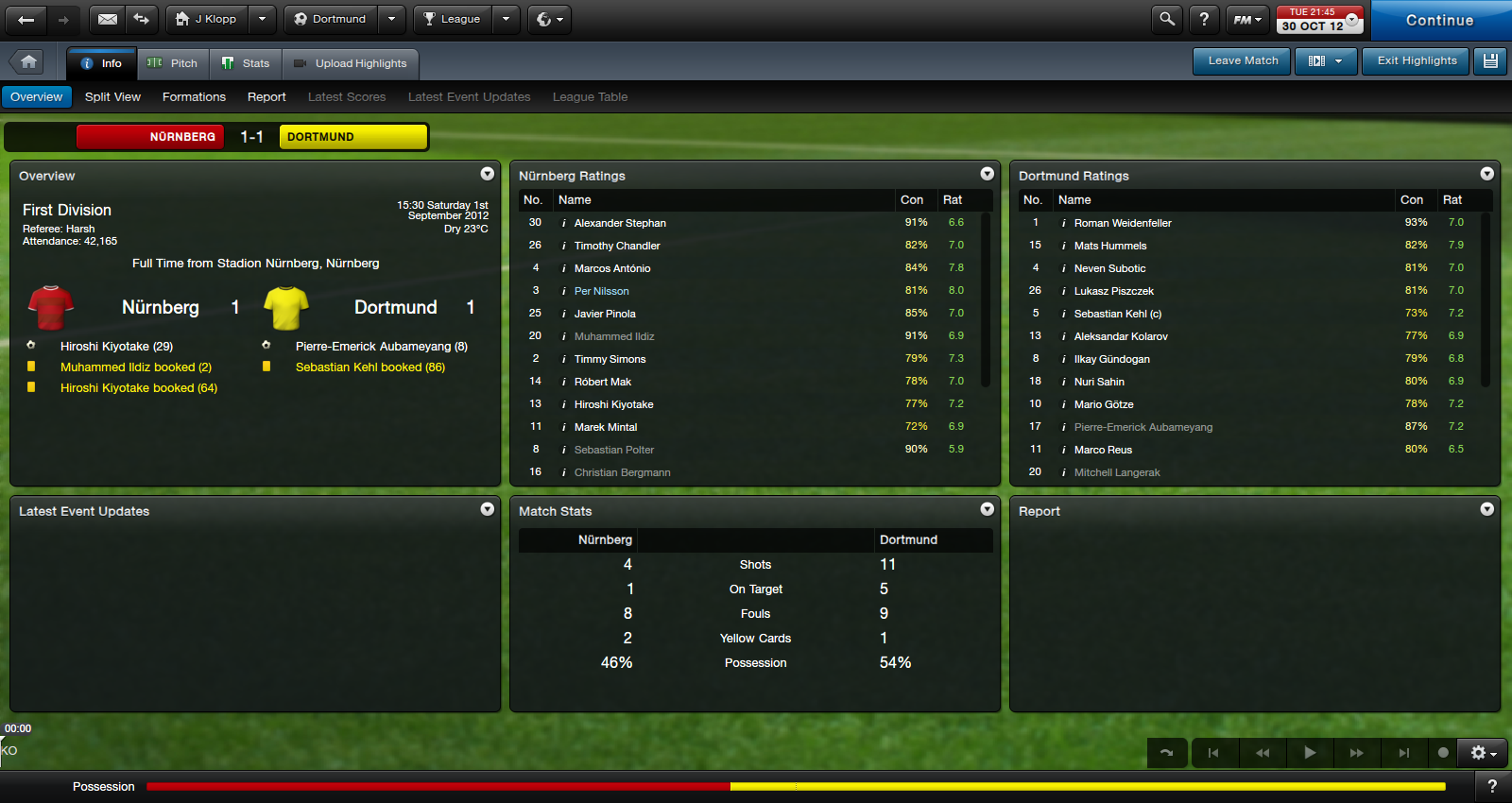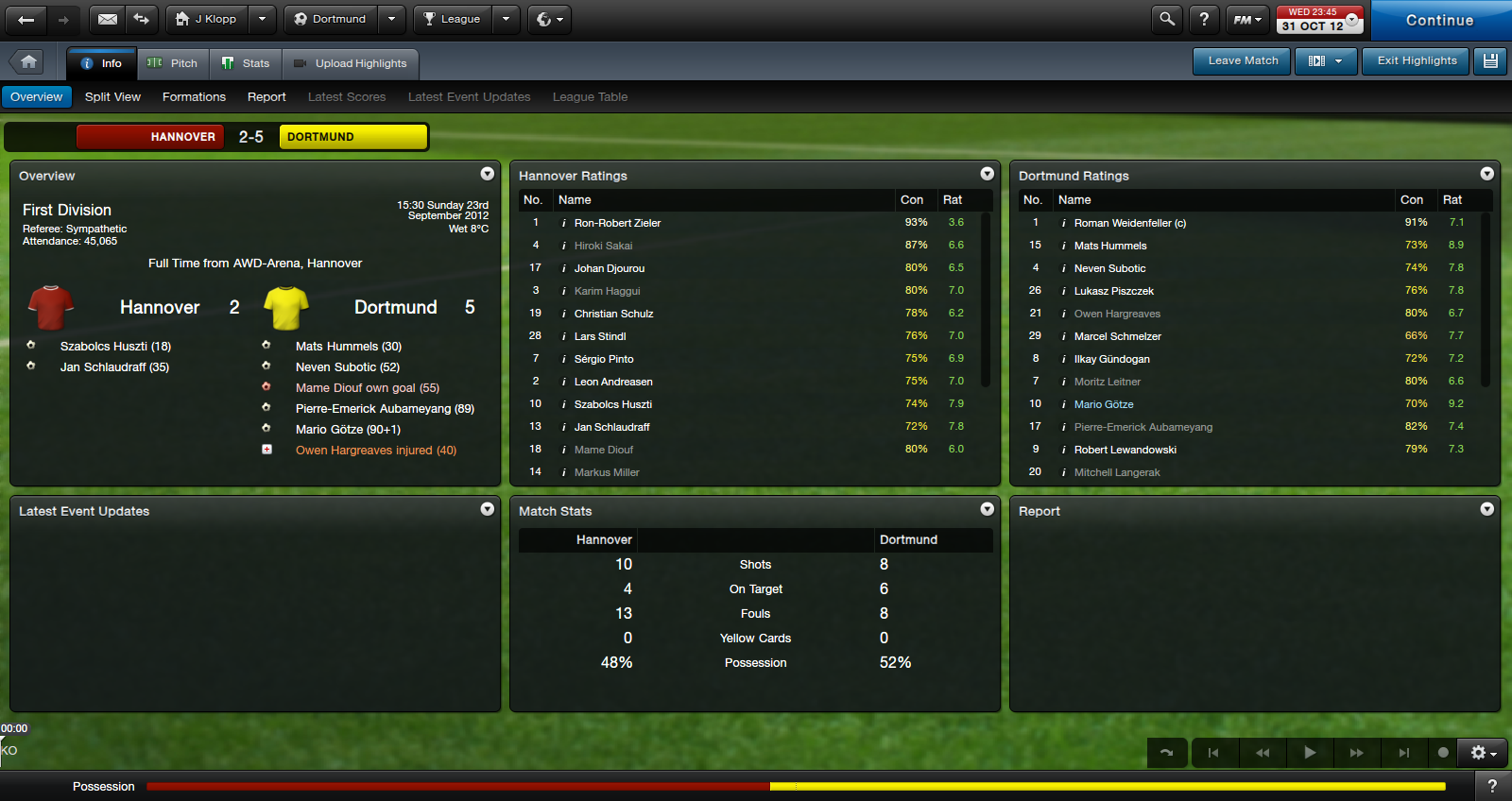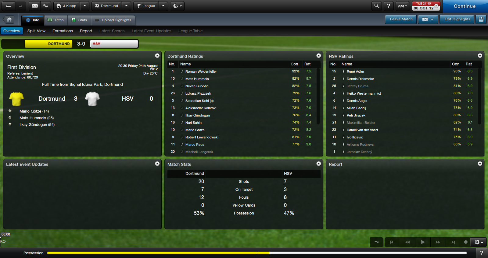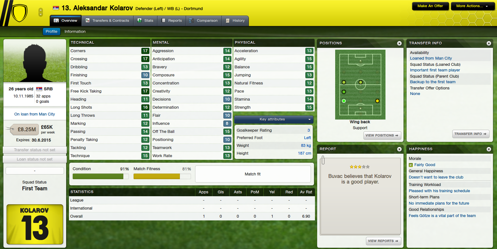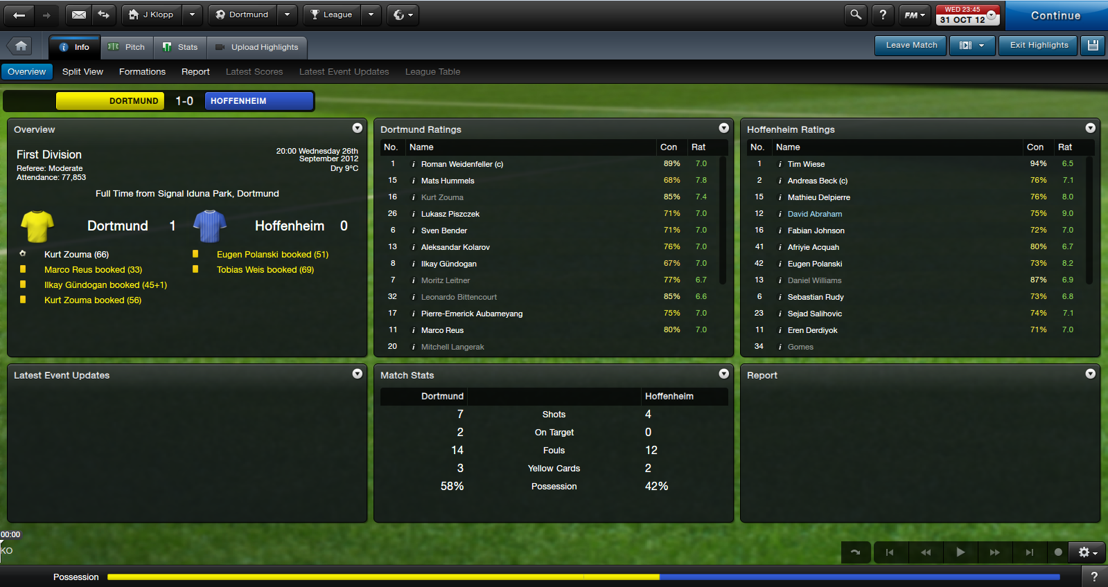 I would use the second team I support. Borussia Dortmund, at the time BVB had 'that trio' of Mario Gotze, Marco Reus and Robert Lewandowski. That season the Schwarzgelben also finished a way off the Bundesliga champs Bayern, 15 points to be exact, and of course reached the Champions League Final and were in the same group as City.