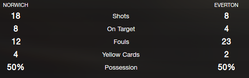 Norwich will go into their Capital One cup semi final second leg with Everton with a two goal advantage, after they beat a weakened Everton team by 3 goals to one at Carrow Road.