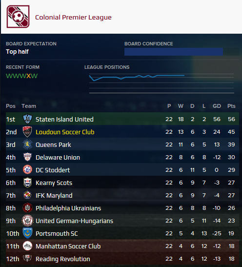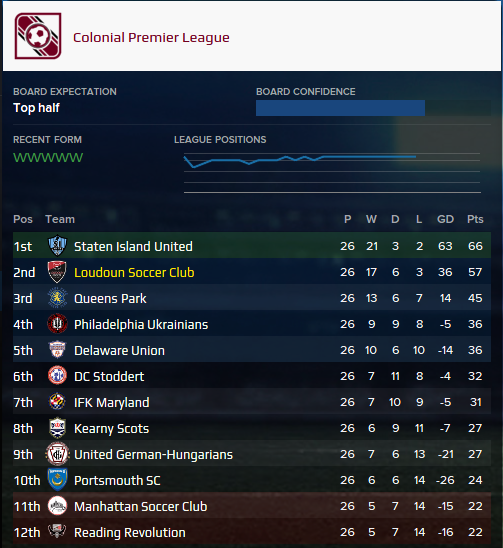 October saw Loudoun Soccer club improve a bit. In the six matches the club would finish the month with a 3-1-2 record in both league and cup play. Arnold's Army is now tied with Queens Park for second place with 21 points. LSC is seven points behind league leaders Staten Island united.