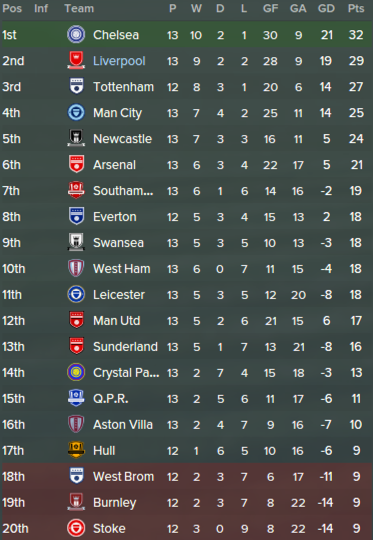 2nd. There's not much more I could have asked for going into December. The guys have been in tremendous form, digging deep to get through some tough games. We've got a lot still to do in Europe, as we lost both of our group games this month, meaning we need to win our next tie against Steaua in December to ensure we get through: we're only 2 points ahead of Zenit, and we need to be clinical to ensure qualification.