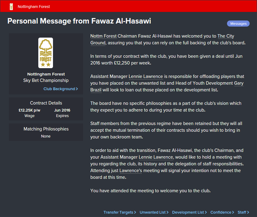 Nottingham Forest have quite a large squad to work with, providing plenty of depth for the grueling championship season ahead! Players are listed along with their age, current ability/potential ability and a short summary of their squad role and ability.
