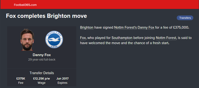 Danny Fox (29) - 2.5/2.5 - another decent backup, very useful for cup games and congested fixture periods.