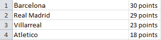 Atletico are 3rd, thanks to the goalscoring exploits of Jackson Martinez and Antoine Griezmann, as well as the creative talents of Koke and Yannick Carrasco. Villarreal are 4th, with Alberto Paloschi, Manu Trigueros and Samuel the main threats.