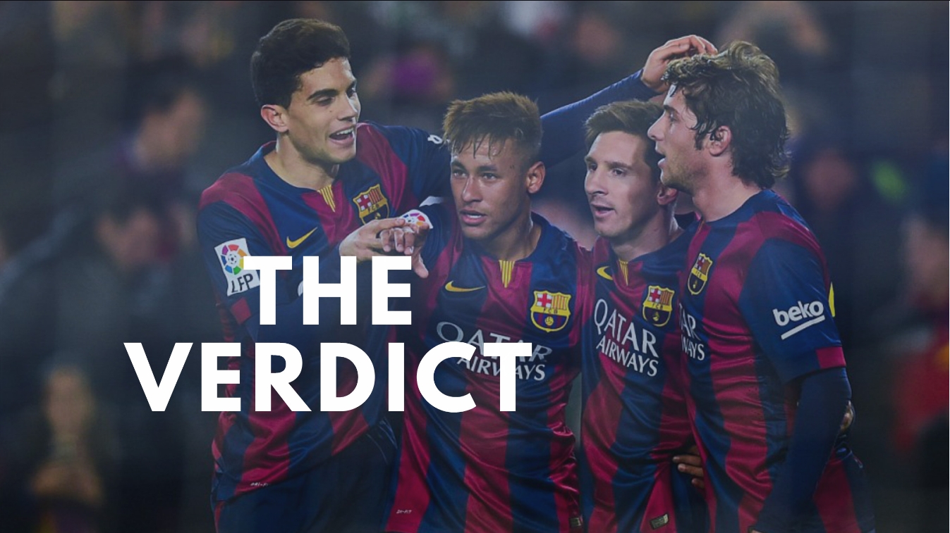 Unsurprisingly it is Barcelona who run out winners, thanks to the diversity, quality and chemistry of Lionel Messi, Luis Suare, and Neymar. Each capable of producing magic in his own way. Real Madrid aren't too far off, but there is an element of tension surrounding the trio. Due mainly to the insanely competitive Cristiano Ronaldo.