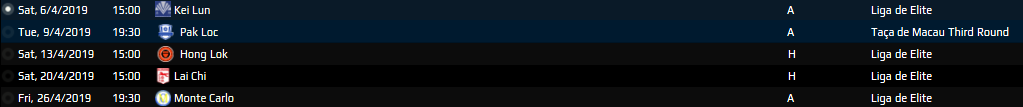 The second month of the season looks to be very busy for this club with a total of five matches. On 14 February the draw for the second round of the 2019 Taça de Macau and we have been drawn against fifth division side Weng Wa. For the Liga de Elite the bigest match will be on the 24th as the club is set to host rival Benfica. This will be the first Derby de Macau match in the Liga Elite since 2016. This will be extra special as the clubs will be facing eachother for the first time as professional clubs. Also on 1 March the winter transfer window closes.