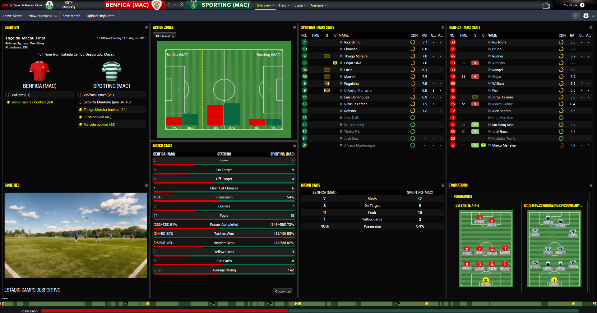 Facing Macau U23's in the fifth round of the Taça de Macau saw Sporting have another outstanding match. In this match Sporting would dominate from the kickoff. The countries U23 proxy club were outmatched and outplayed during the 90 minutes. Timba Eder would be the man of the match scoring two goals. Sadly winger Gilberto Monteiro went down with an injury and will be out for a week.