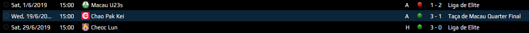 June is the start of the transfer window and the club is looking to make a few moves. in league play there are two matches against Macau U23's and Cheoc Lun. In the Taça de Macau Sporting get to face Chao Pak Kei once again. This time they are looking to settle the score and get revenge from the last two meetings.