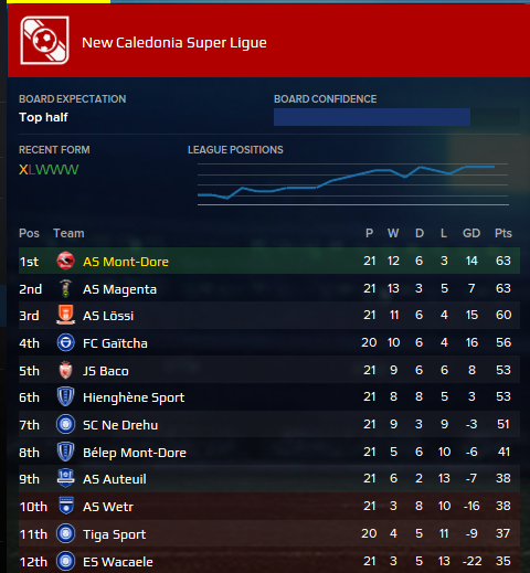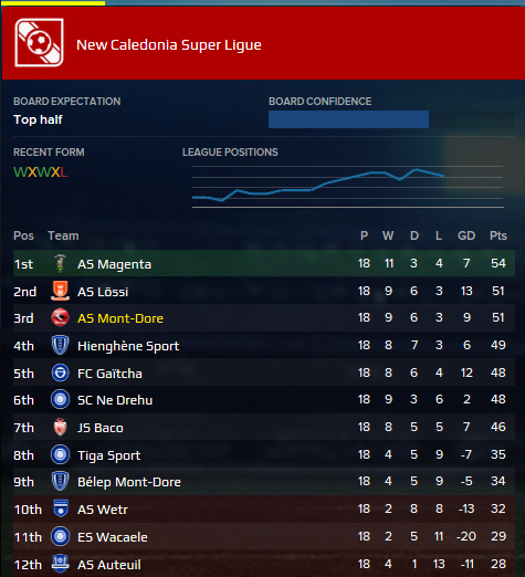 Despite drawing rival AS Belep it was a very successful full month of matches for manager Kévin Gauthier. During this time his club seemed to be at a pace that has not been seen in some time. During the month the club would win four out of the five league matches. The only blemish came against Belep in a disappointing 1-1 draw. The key match to the month came against AS Magenta at the start of the month as our club would win 3-0.