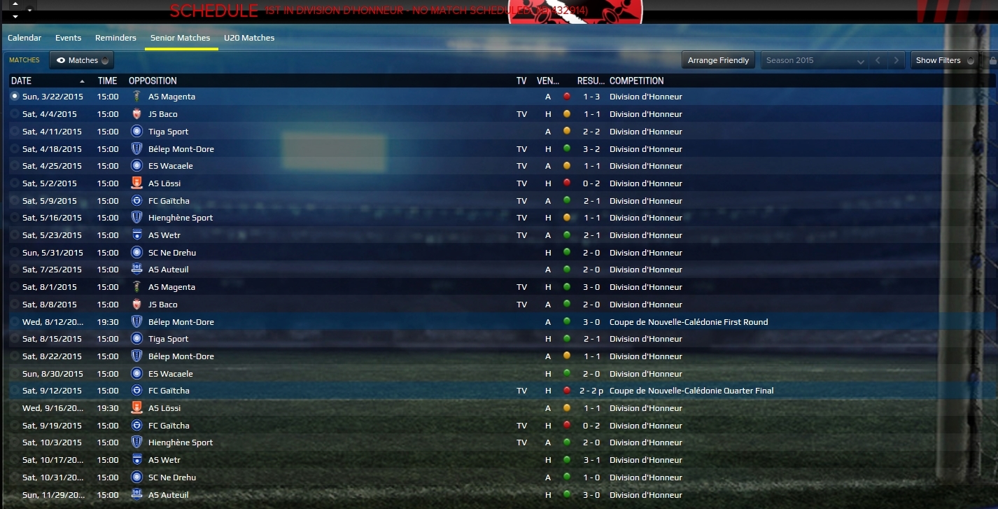 In cup play Les Rouges et Noirs would kick off the 2015 Coupe de Nouvelle-Calédonie off with a 3-0 victory over AS Belep. In this match the rivals were no match for us as the club was carried by two goals from Jean-Marc Case. With that victory the club will be facing Gaïtcha FCN in the next round. The match is set for a 3:00pm NCT on 12 September.