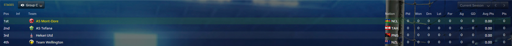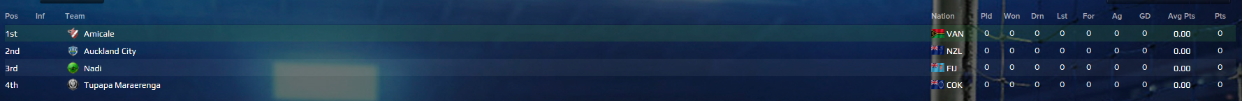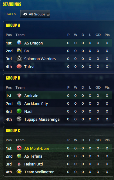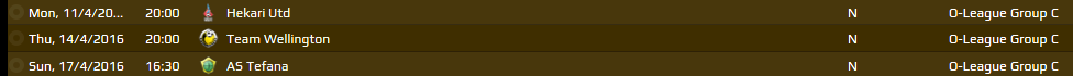 So as I was present at the draw here in Auckland this was very exciting as it was new to me. One of the coolest parts was that I got to meet all the other managers and travel to another city. So as the draw was announced I was hoping and praying we wouldn't get a club from New Zealand. Well sadly we were drawn with Team Wellington. This crushed my dreams of an easy route to the semi finals. Oh well we will have to fight our way to second overall between the three groups. Below is what our schedule will look like.