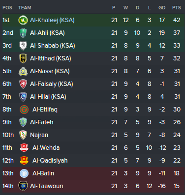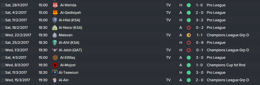 After the 2 victories we faced struggling Al-Taawoun. We went 1-0 quite early on, once again, but didn't manage to make the 2nd goal until late in the second half. Al-Taawoun were looking very poor and didn't really stand a chance. Just before the final whistle we made the 3rd goal.