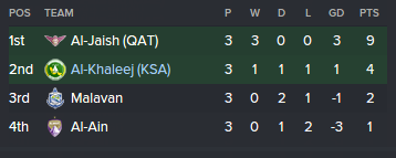 Our second Champions League match was against Al-Jaish, this time at home. We kept the trend of the month going, just playing a very poor game. Luckily for us Al-Jaish weren't great either. But they were better resulting in a 0-1 win over us.