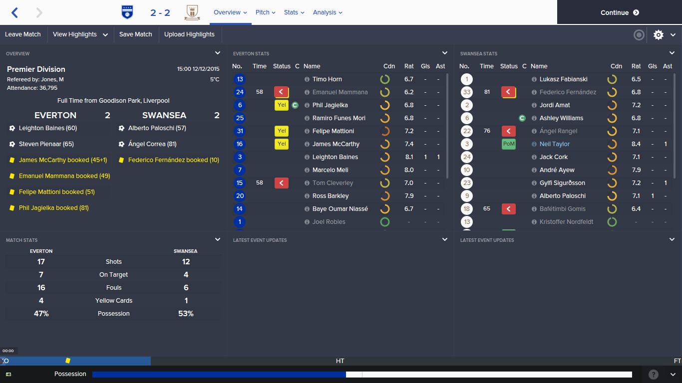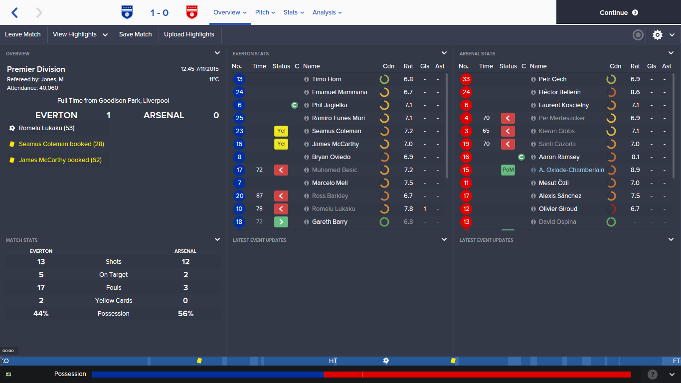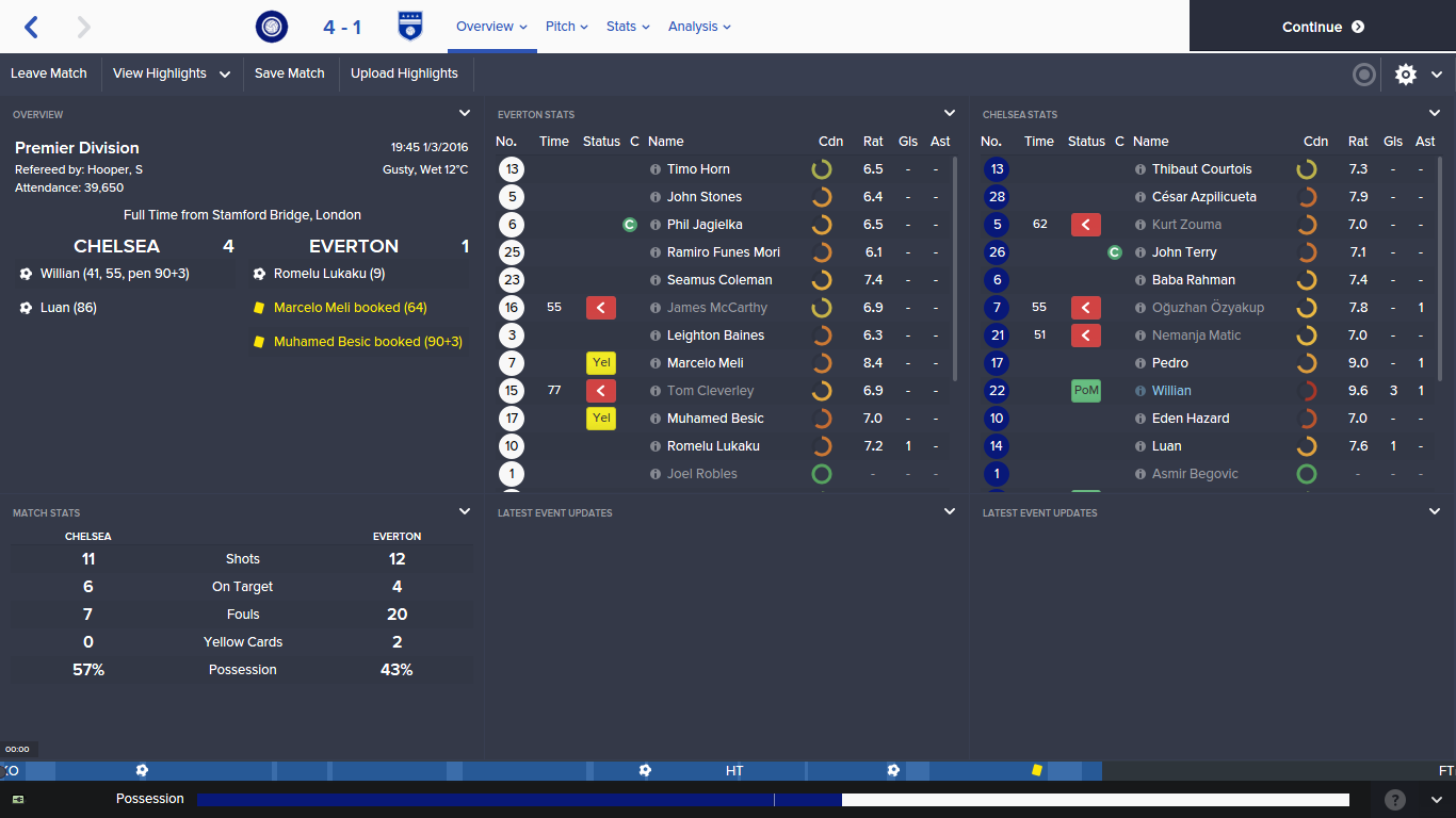 We take the lead when Baines crosses to Lukaku. A free kick, A deflected 35 yard shot and penalty from William and Luan with the goals for them. Two goals from them were in the last 5 minutes. We deserved something from the game.
