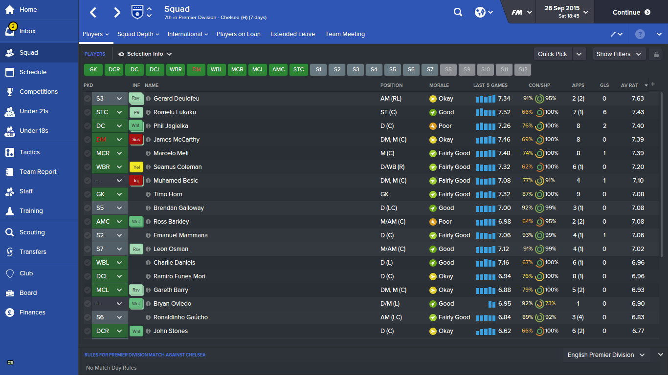 I plan to sell 3 of these, hopefully get a bit of cash for Kevin. As for Lennon and Pienaar, I just want them off the wage bill. Pienaar might get a chance at AMC when he’s back fit. Deulofeu will be trained up for CAM, doubt it will work. Will more than likely be sold next year.
