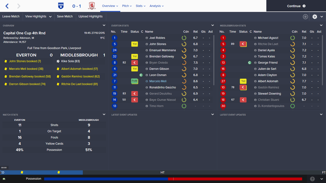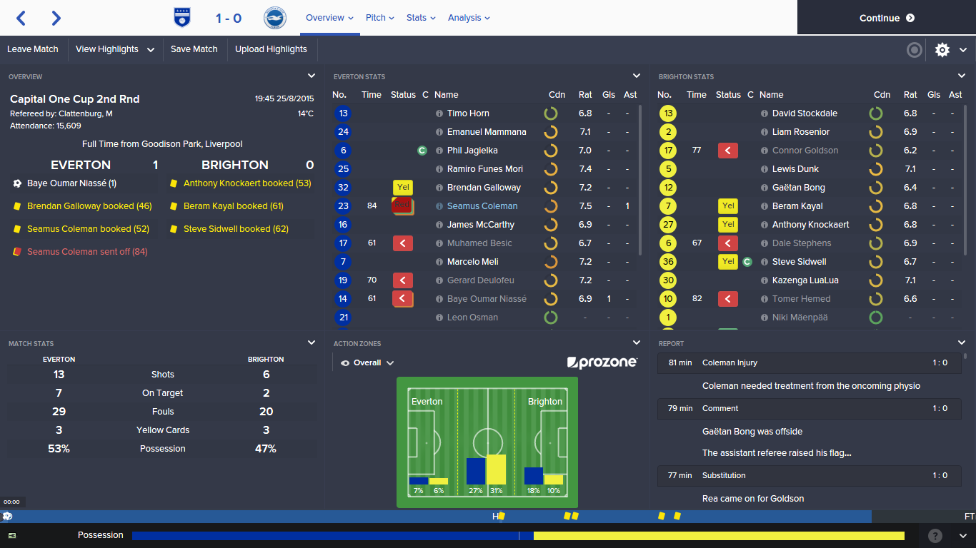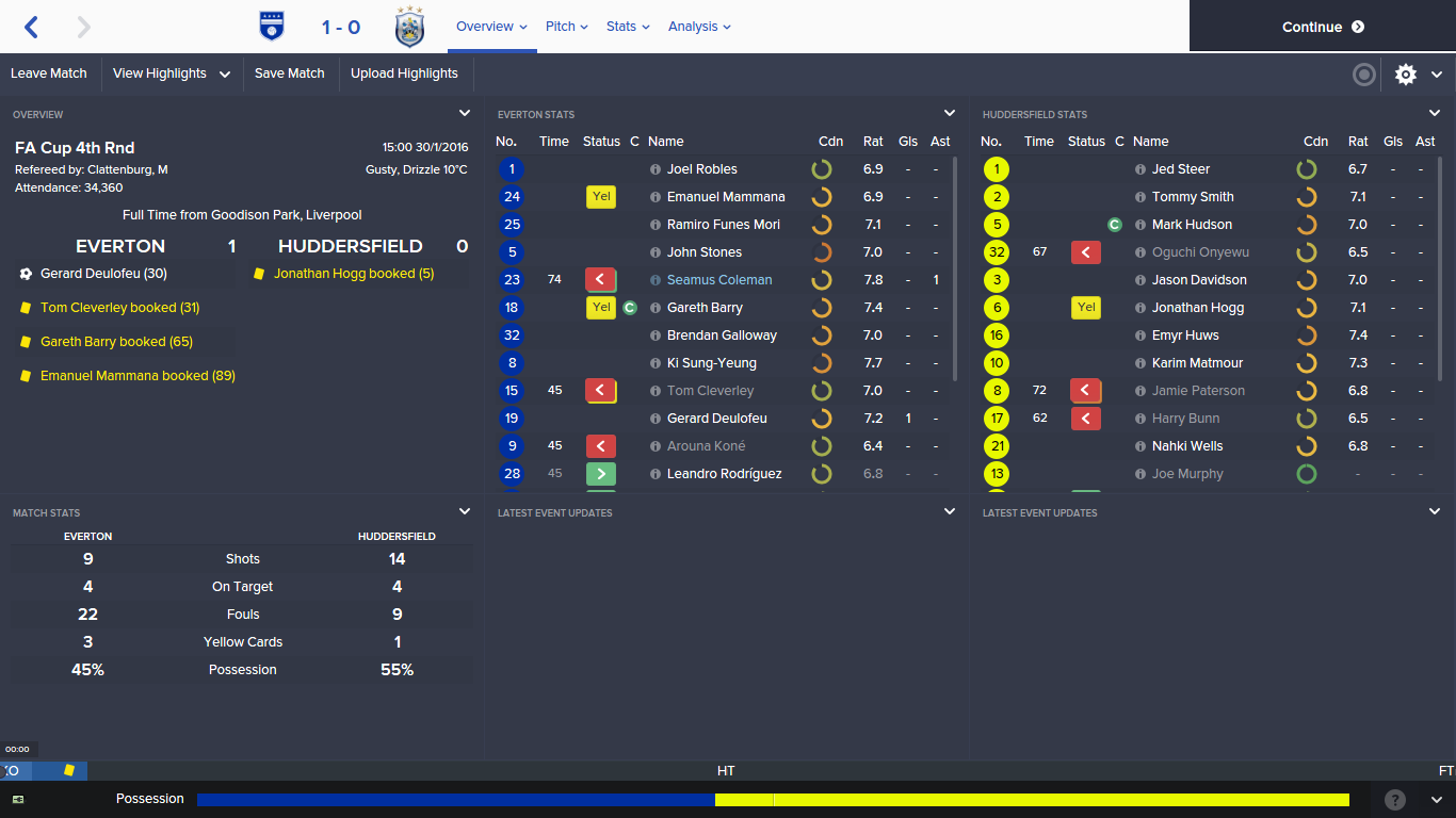 They take the lead with a goal from Iturbe, Great response from the lads straight after half time with Baines crossing for Lukaku. Lukaku is a horse of a man. Jags gets the winner in the 88th minute from a corner, Captain Fantastic!