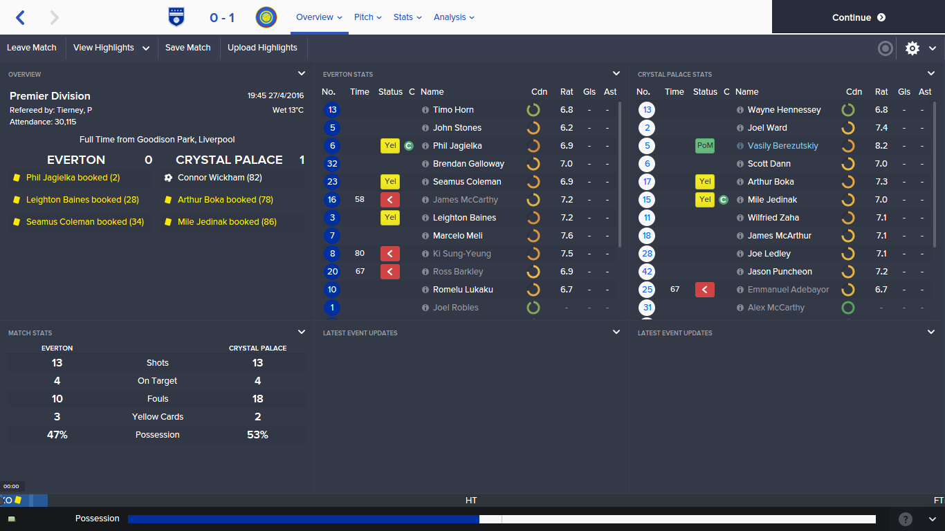 That was a good enough run for us, I think we got a bit unlucky in the two defeats but in saying that we scored a few late winners. Lukaku is some man, 8 goals in 8 games since his injury. Baines has been sensational too. Stones is unhappy again as is Jagielka about bids rejected for them.