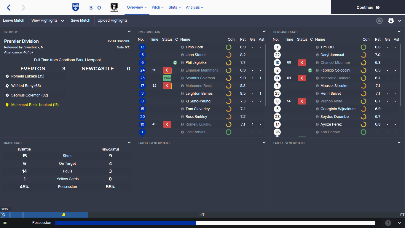 Lukaku gets the first but comes off at half time with a small knock. Bony gets the 2nd and Coleman adds a 3rd from a corner. Good win for the lads, Coleman with a goal and assist