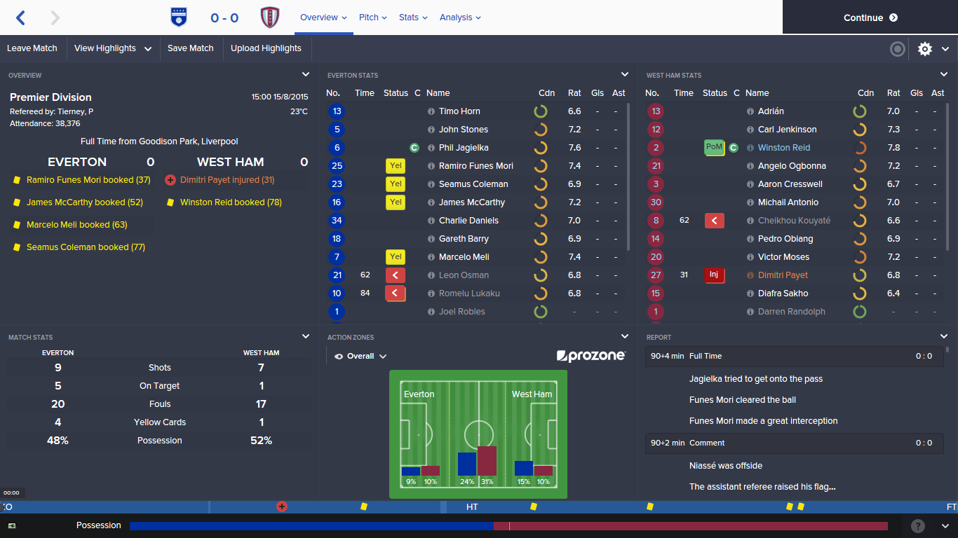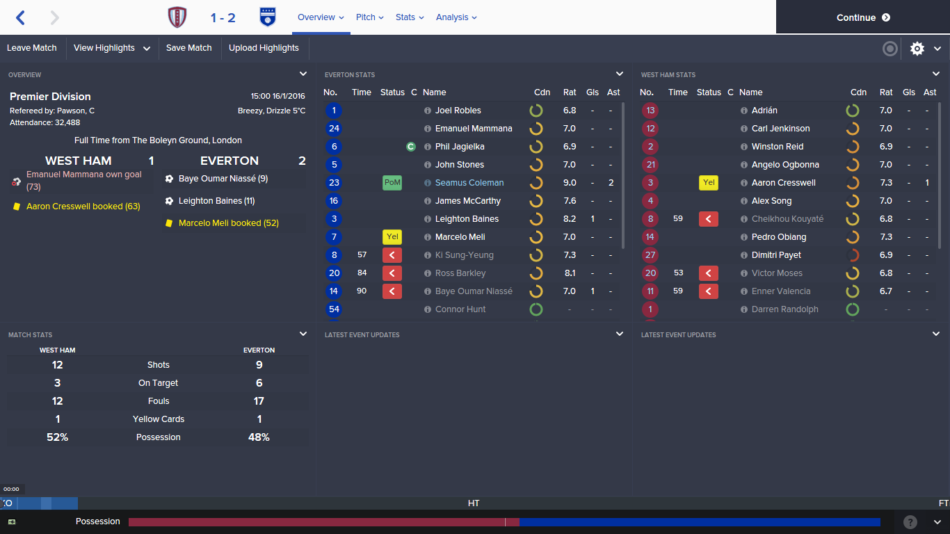 A boring nil nil. Lukaku picks up a facial injury after 50 odd minutes. We were probably a bit too defensive in this game, but Reid has a monstrous game for the Hammers at the back. Meli impresses in midfield.