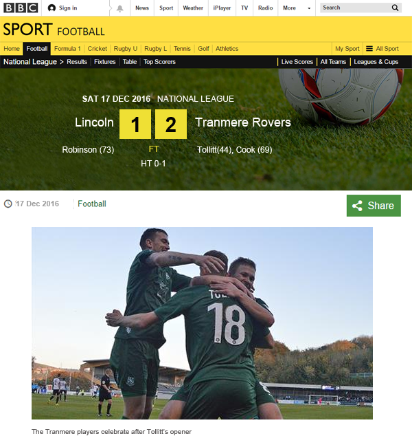 Tranmere: Turner, Fitzwater, McNulty (Ihiekwe 45), A Coker, Ridehalgh (Shaw 45), S Jennings, Collins (Tombides 51), Maynard, Tollitt, Norwood, Cook.