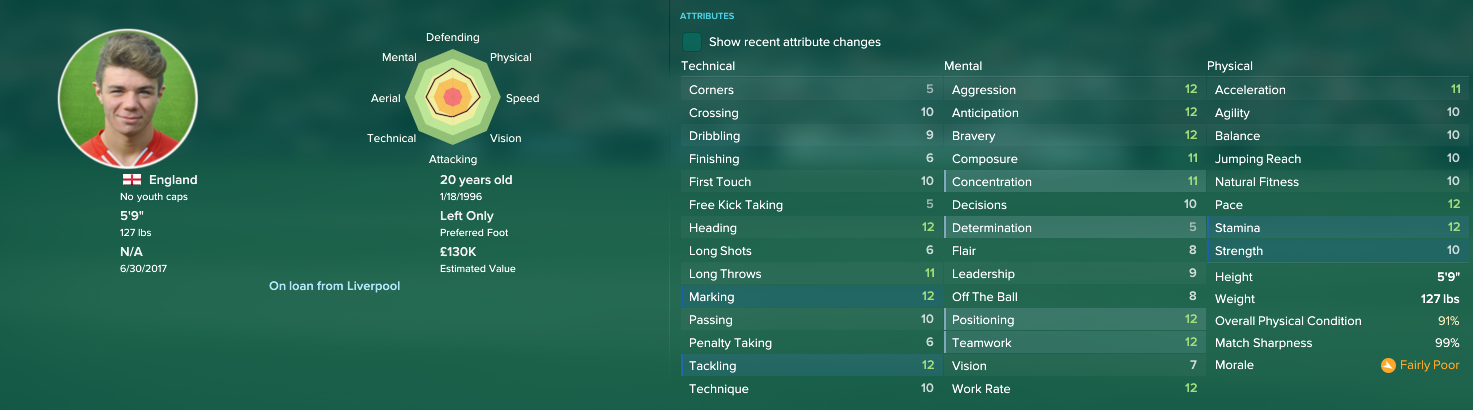 There was a lack of creative and skilled wingplay in the final third and our defensive midfielder Liam Kelly really seemed to struggle in the 4-3-3 with two attacking wingers and a defensive midfielder. Despite my dislike for it, this squad may be more suited to a traditional 4-4-2 until I can bring in more of my own personnel.