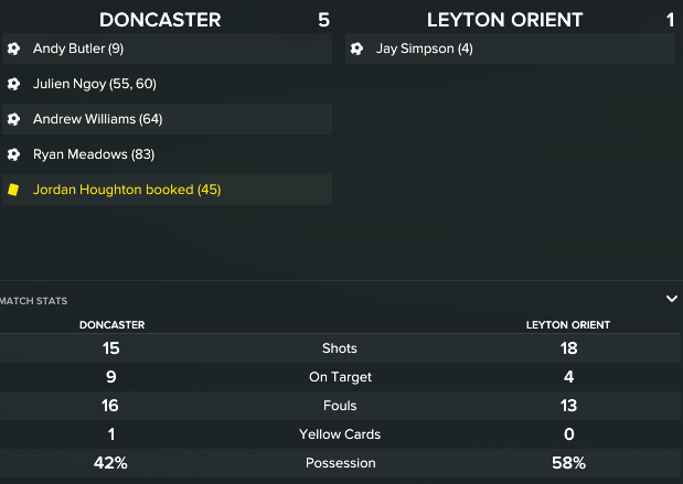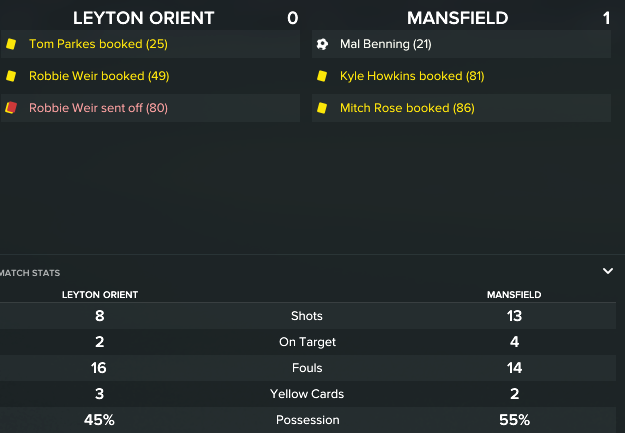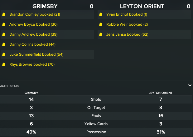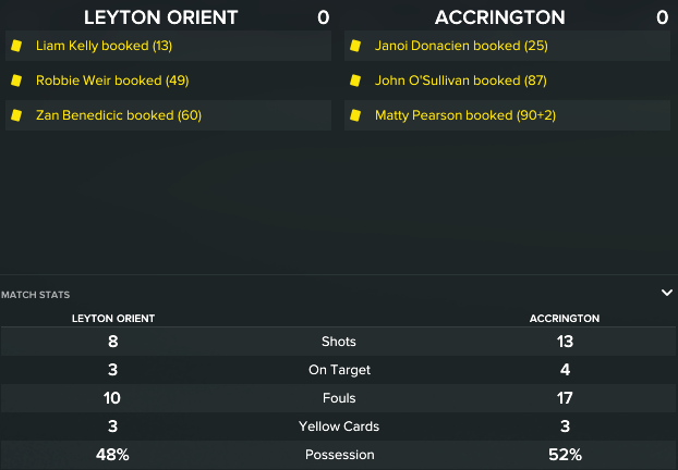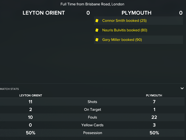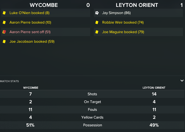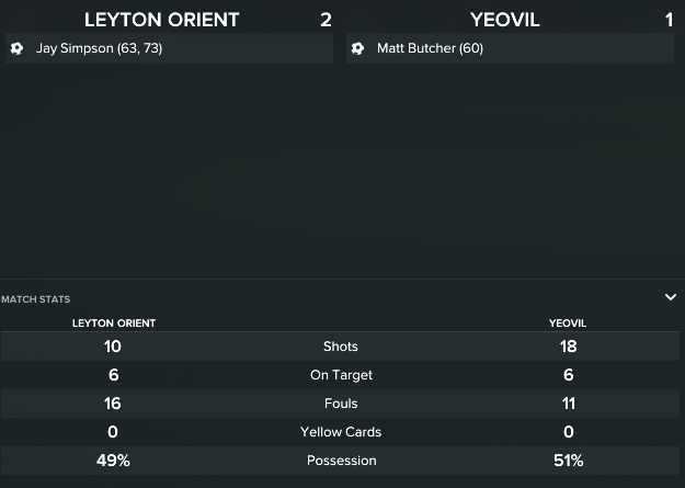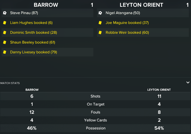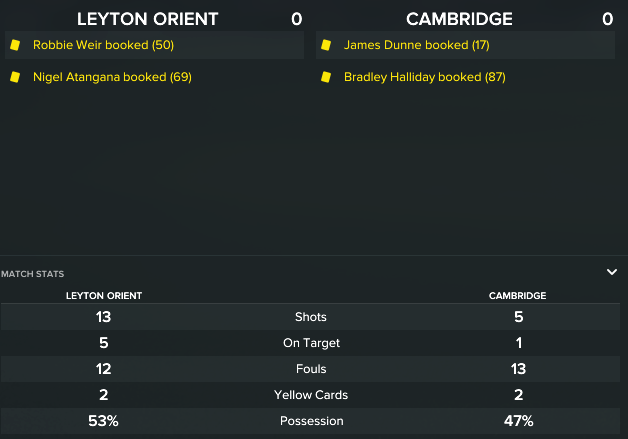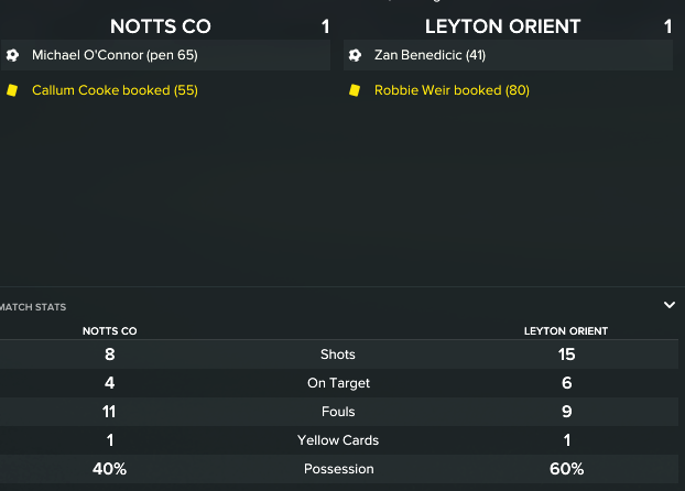 Starting to get a little fed up now. We had good chances, had some promising attacking moves, but the majority of our shots were blocked, including a shot from just outside the 6 yard box. My striker pairing of Jay Simpson and Jordan Bowery have been woefully ineffective and it may be time for a change. Up to this point I was looking at the service they were receiving, but a single goal (scored by our midfielder) from 7 matches in simply unacceptable. We have our first group match in the Checkatrade Trophy competition coming up, so we'll try send some new faces to the front and see if things can change through a bit of experimentation in a non-league match.