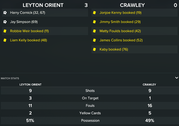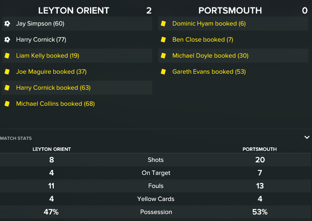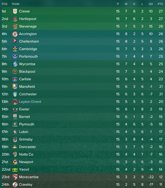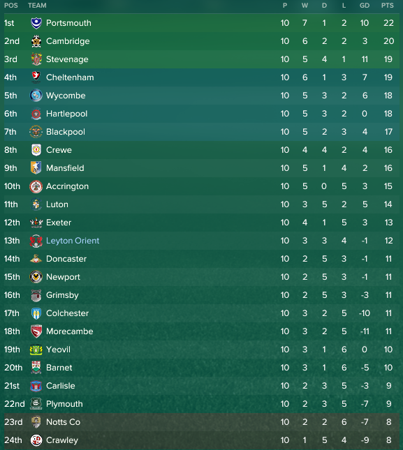 One terrible month, one great month. It was anyone's guess as to how Leyton Orient would fair in their 3rd month of the 2016/2017 season. Tough matchups against Portsmouth, Crewe and Hartlepool (all top 7 clubs) would really test the mettle of Leyton Orient to determine whether the strong showing in September was only due to the weakness of their competition.