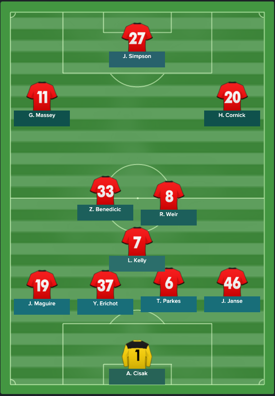 The idea here was to match up the manpower in the centre of the pitch and hope that the physical play-styles of Benedicic, Weir and Kelly would be able to win out and then distribute to the flanks where Cornick on the right and Massey/Semedo on the left could push forward to link up with Jay Simpson. And although we conceded off of an awkward broken setpiece in the 60th minute, the overall transition was a success as Simpson was able to grab a brace for himself and we were able to secure our third consecutive win.