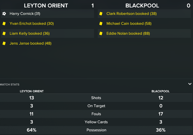 Blackpool truly are woeful. I actually was a little surprised to see how far they had fallen, and this game encapsulated their struggles perfectly. They couldn't get a sniff of the ball (or the net), failing to register a single shot on target. It was a fairly cynical match, but our club hero continued to produce as Harry Cornick tallied his 5th goal of the campaign to give us the tidy 1-0 victory.