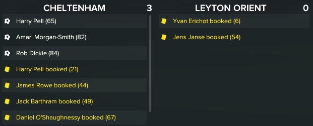 Frustrating start to the season here where we were definitively outplayed in the final third. We held the majority of possession (58%), but seemed unable or unwilling to do anything with it. Tactical changes in the second half, or perhaps a lack of fitness allowed Cheltenham to grab the lead in the 65th minute before a more aggressive tactic to try and pull level resulted in the host club netting two more goals before full-time. Zero shots on target simply won't do, but back to the drawing board ahead of our second match. There were no real standout performances, but if it had to go to anyone it would be our central midfielder Zan Benedicic as he completed 60 of his 70 passes and made a total of 13 interceptions in the midfield.