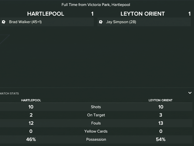 I can't say we deserved to win this one, but it always hurts when you give up the lead to the opposition. And although Hartlepool equalised in the first half, it was during added time that completely changed my perception of the match heading in to half time. We were also without our star playmaker in Zan Benedicic who, after returning from another international break, injured his knee in training and will be sidelined for several weeks. Nigel Atangana had previously handed in a transfer request, so we'll see if his displeasure at not featuring in my starting XI was well founded as he will need to immediately slot into my starting lineup until Benedicic returns.