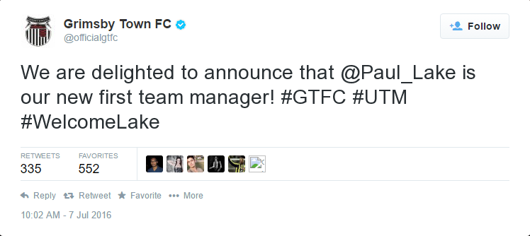 After 8 years out of football, Paul Lake has taken the vacant managerial position at Grimsby Town. Following Paul Hurst's departure and subsequent appointment at Shrewsbury Town. After guiding Grimsby to promotion via a 3-1 play-off victory over Forest Green at Wembley. Narrowly beating out Marcus Bignot to the hot seat at Blundell Park. As the Mighty Mariners go back into the football league for the first time in 6 years.