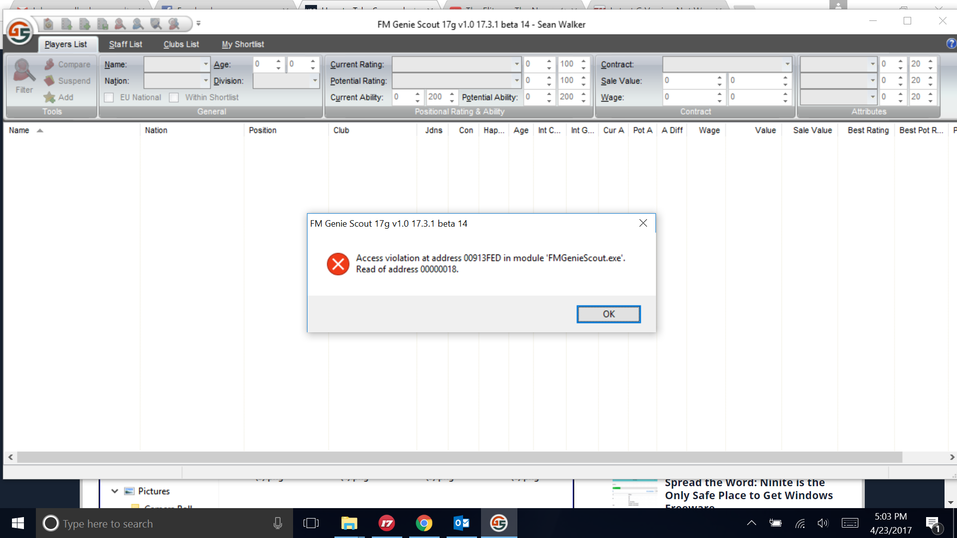 I'm using the latest 17.3.0 FM patch. Last night I donated and downloaded the latest 'G Version'. Unfortunately, it won't load my game. Below is a screenshot of the error message.