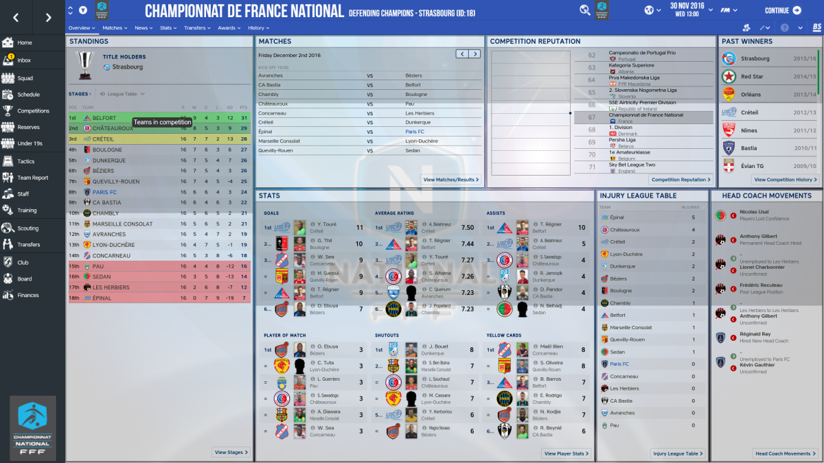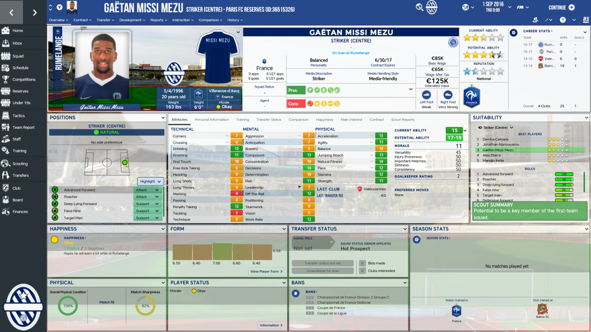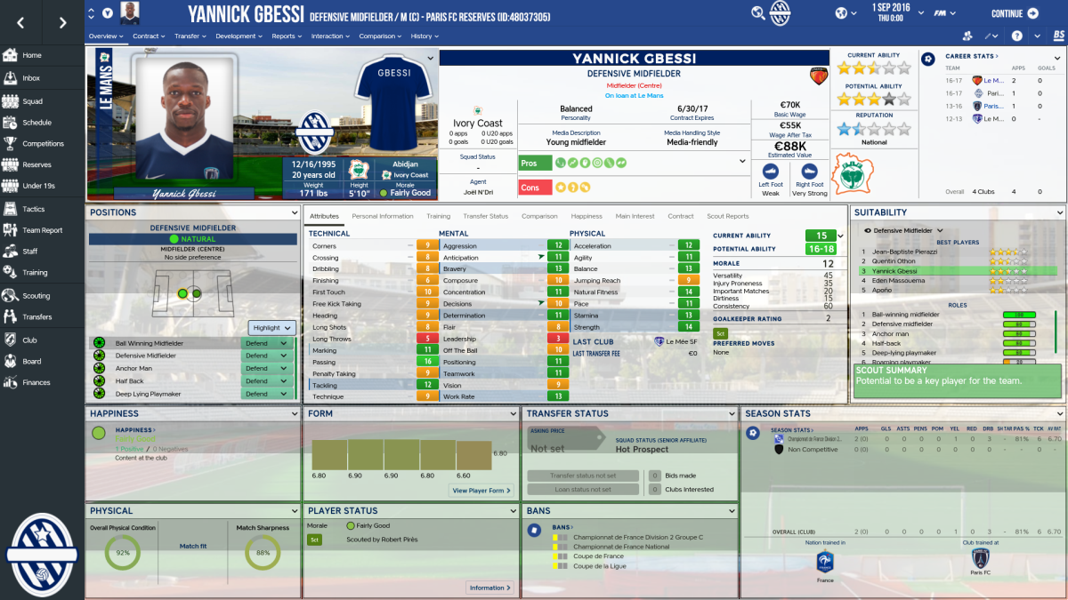 Despite being on of our best youth prospects I felt a loan move would be good this season because I am not sure how much playing time he would get. He joins Yannick at our affiliate club Le Mans who are in the Championnat Division 2-B.