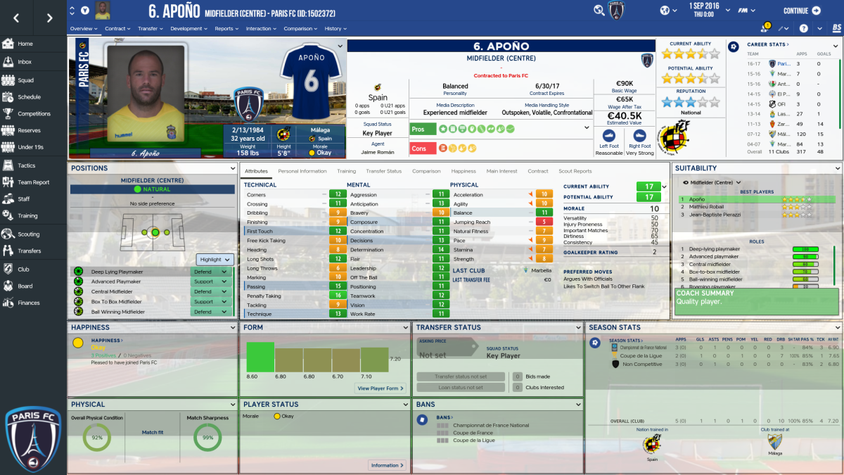Apoño in my opinion was the biggest pickup for us in the transfer window, He was recommended by Barcelona legend and our very own scout Carles Puyol. At first I wasn't sure if Puyol was going to be right but in this short time Apoño has made a massive impact even at the age of 32. Some of his positives include penalty taking and off the ball movement. His weaknesses include his jumping reach.