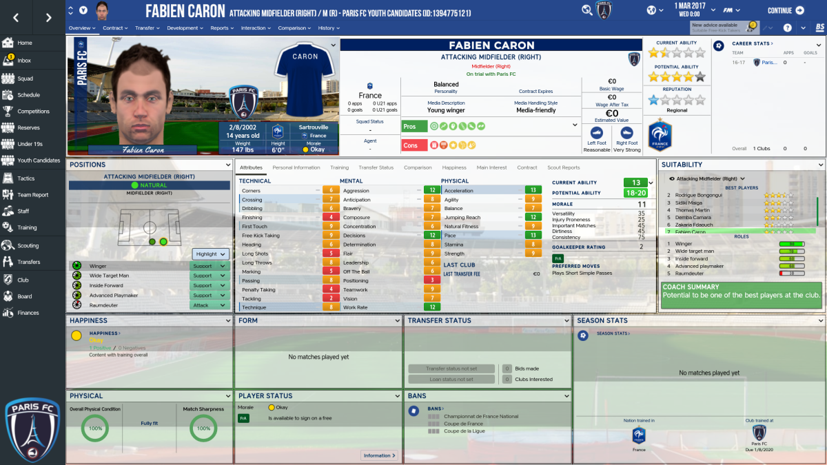 Another promising player that can become a really good winger in my system. Just like Yann I think he will get some playing time on he first team before 18. Hopefully he does well.