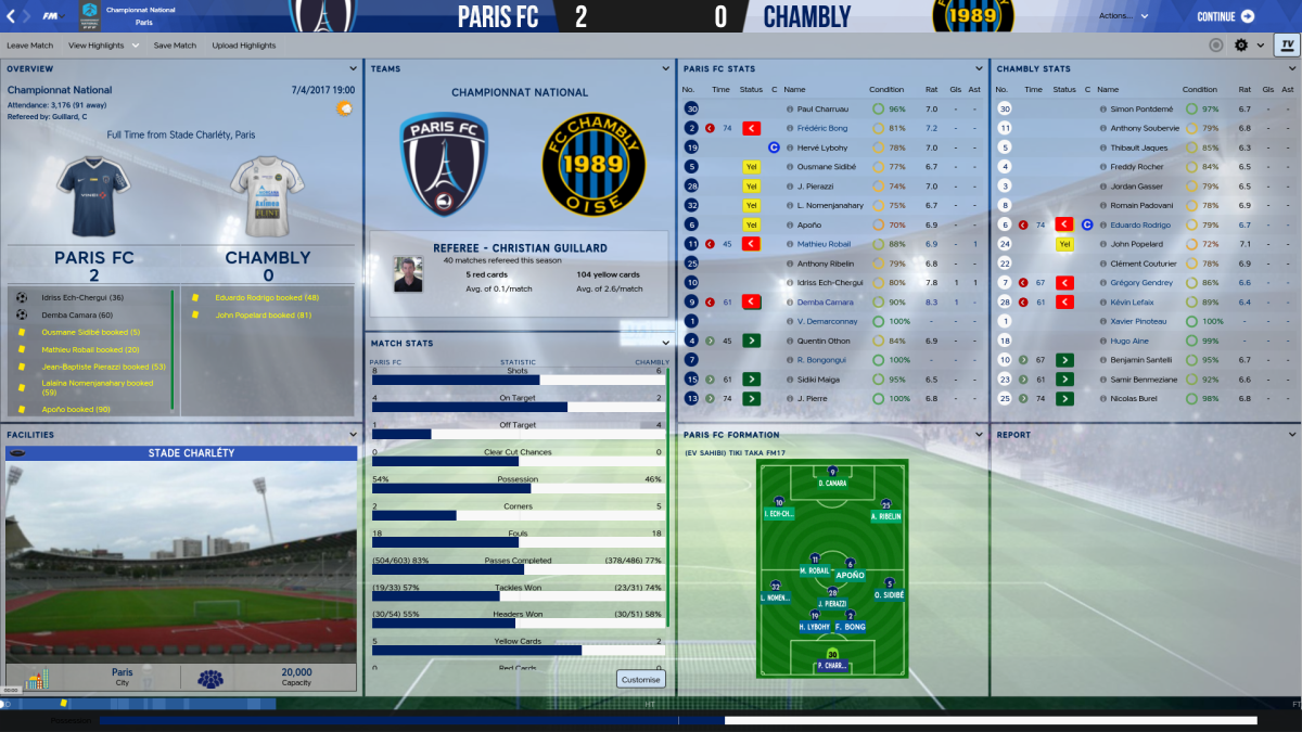 The match against Chambly at home saw our win streak continue with the fourth victory in a row. Attacking Midfielder Idriss Ech-Chergui gave us the lead with his second goal of the year in the 36th minute. In the 60th Demba Camara started off a very strong month with a goal in the 60th. Paris FC win this one 2-0.