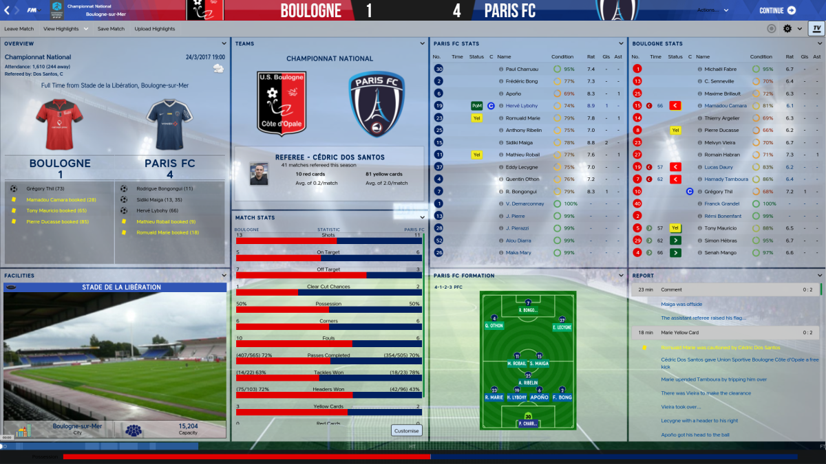 Finally we traveled to Boulogne for a date with USBCO. Riding high from the previous victory over Belfort Paris FC would come out flying. Rodrigue Bongongui started the goal fest with a brace in the eleventh minute. Followed by two goals form Sidiki Maiga in the thirteenth and thirty-fifth minutes. Hervé Lybohy added his second goal of the month in the sixty-sixth. USBCO's only answer came in the seventy-third. We won big by a final score of 4-1.