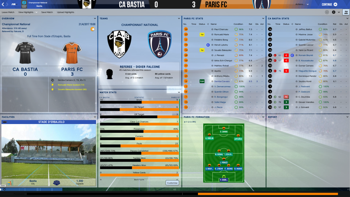 A trip to Bastia saw the guys return after a fourteen day break between the last match and this one. The break was needed for the club and the end result showed it. Demba (Camara) continued his amazing month as he collected all three goals in the match. His hatrick helped the club start to pull away from the pack a little bit.