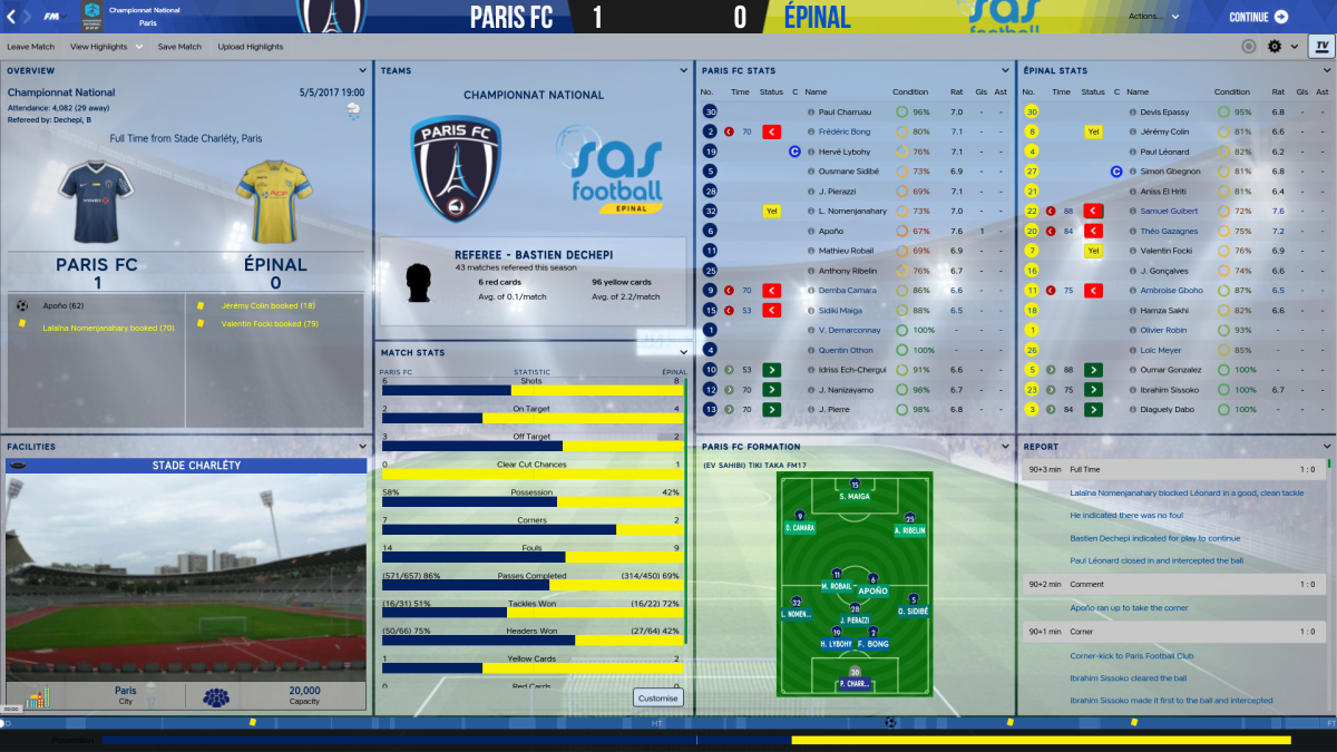 The match against US Créteil was not particularly exciting but Le PFC were able to get the job done in a 1-1 draw. Demba Camara scored PFC's lone goal in the 81st minute. A few minutes later Créteil's Fabien Boyer answered back with a goal in the 89th minute. The outcome was no issue as PFC finished four points ahead of second place US Dunkerque.