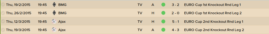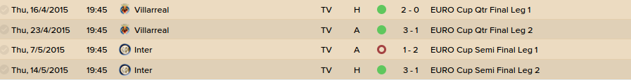 It was a gruelling trip to the final but in a fairytale ending, we defeat our arch rivals Liverpool 7-3 in the final in Warsaw. We went undefeated in the group stage, winning every home game and losing every away game, and were drawn against Borussia Monchengladbach in the Round of 32. Dispatching of The German Team 5-2, Ajax 9-4 and Villareal 5-1, we faced our sternest competition yet in Internazionale in the semi finals. A 2-1 loss away from home had me scared but we backed up with a 3-1 win at Goodison Park to send us through to the final where we would play Liverpool.