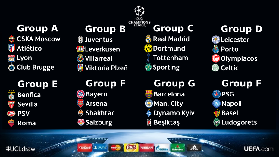 The draw has been finished and we have some great match ups. Group C is what you would call the Group of Death with Real Madrid, Dortmund, Tottenham and Sporting CP.