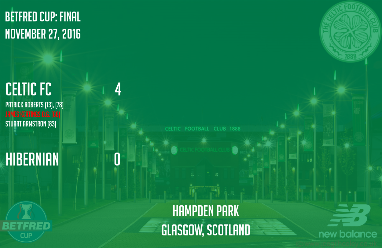 Four days later Celtic would attempt to win their first piece of silverware this season. In a packed Hampden Celtic would win by a 4-0 score en route to the clubs 100th trophy in club history.