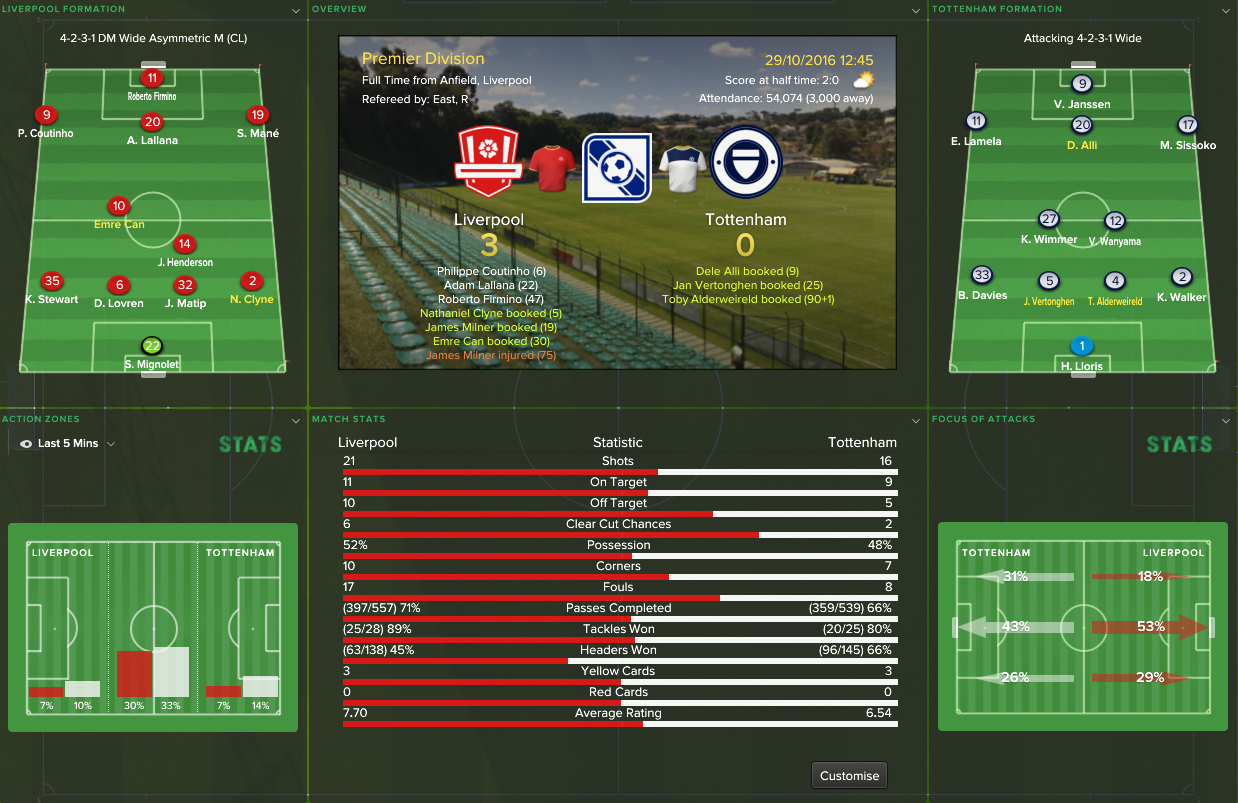 29/10/2016 Liverpool 3 - 0 Tottenham, EPL