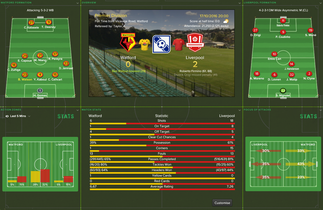 17/10/2016 Liverpool 2 - 0 Watford, EPL
